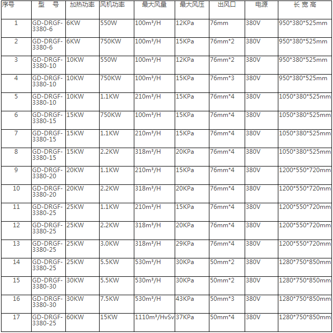 風機選配為標準高壓風機,風量大,升溫速度快,熱效率高,能耗低,主要用于空間升溫,快速干燥。例如:瓶體干燥,布料清洗后烘干,顆粒、粉塵末狀腔體內干燥,罐體內腔干燥。紙管烘房內快速干燥。消失膜烘箱內干燥。電子產品清洗之后干燥。鋁材、板材、管材、清洗后干燥。